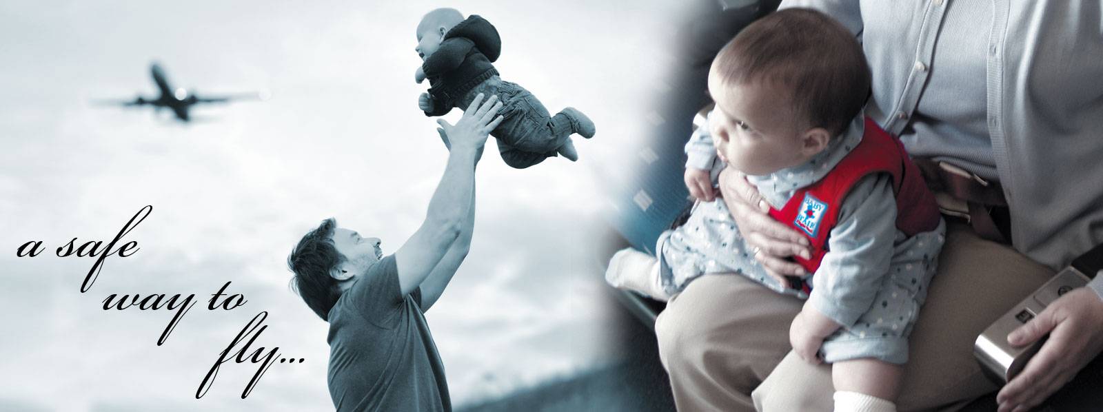 THE BABY B'AIR FLIGHT VEST USES YOUR SEAT BELT TO KEEP YOUR BABY ON YOUR LAP